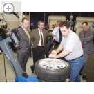 | Peter Rudnig, Geschäftsführer der Racing Department GmbH und Frontmann im PIRELLI Action-Team zeigt wie es richtig geht. |