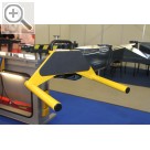 | Für Getriebearbeiten kann der bodenlaufende Universalgetriebeheber von MAHA mit einer multidimensional einstellbaren Getriebeplatte ausgestattet werden. |