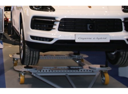 Der Carrier ist Dank Deichsel und leichtläufiger Gummibereifung werkstattgerecht zu manövrieren.