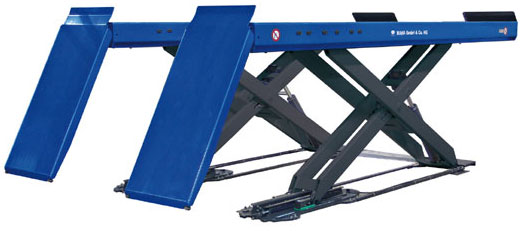 Unter den Fahrflächen sind Sicherheitsklinken angebracht, welche die Hebebühne gegen ungewolltes Absenken sichern. Diese Sicherheitsklinken werden auch zum mechanischen Ansetzen bei der Fahrwerksvermessung genutzt. Sämtliche Attribute sprechen für die Eignung dieser Scheren-Hebebühne auch zur Fahrzeugvermessung. Für diesen Anwendungszweck ist die optionale Ausstattung mit Schiebeplatten und Ausgleichsplatten für den Drehteller möglich. Ein weiterer wesentlicher Einsatzbereich ist die Dialogannahme, auch hierfür besteht eine Option in Form eines pneumatischen Achsspieltesters und Radfreihebers. Aber auch im allgemeinen Fahrzeugservice leistet die MSL 4.0 hervorragende Dienste.